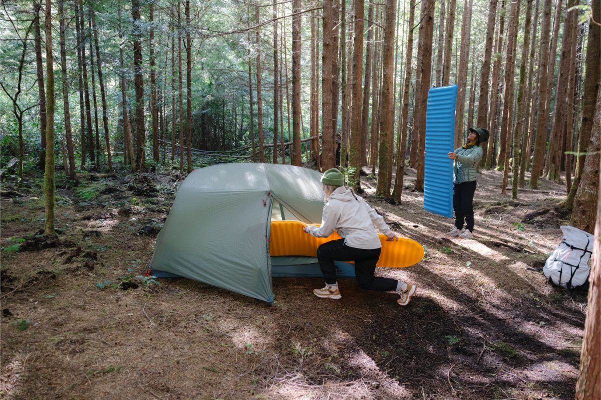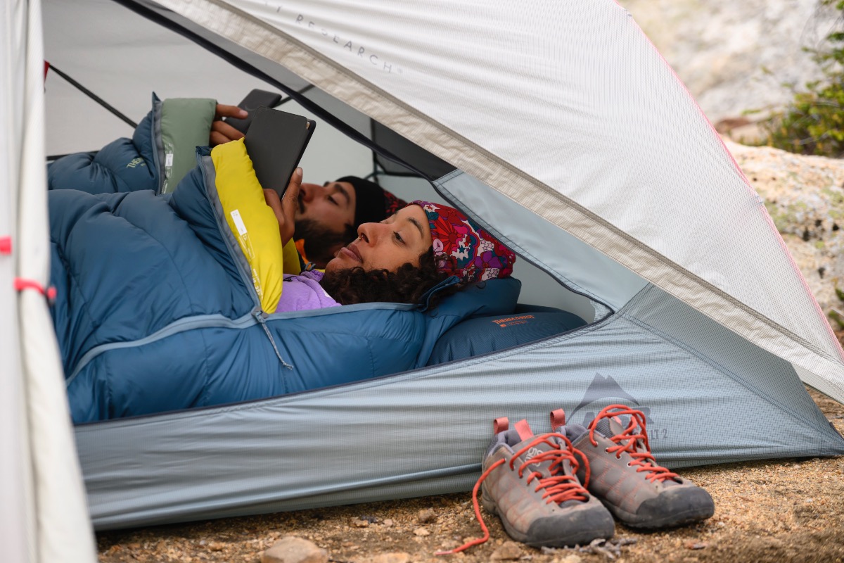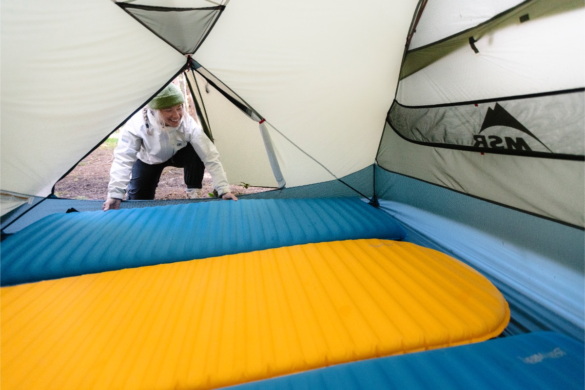 Ale lekkość nie oznacza tutaj ciasnoty. MSR wprowadził rewolucyjną, w pełni prostokątną podłogę bez zwężeń w nogach. Dzięki temu bez problemu zmieścisz w środku nowoczesne, prostokątne materace turystyczne, nie wchodząc na “terytorium” towarzysza.