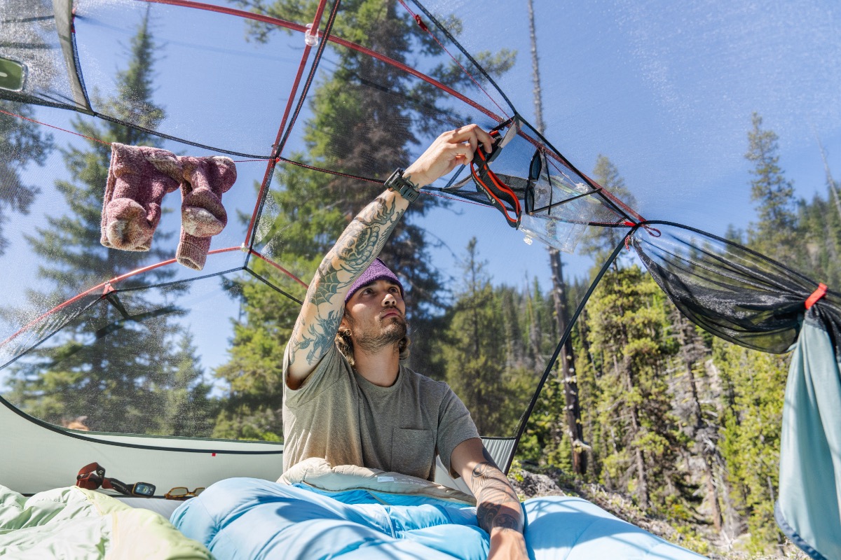 Sypialnia wykonana w większości z przewiewnej siateczki micromesh zapewnia doskonałą cyrkulację powietrza, minimalizując kondensację, a przy bezchmurnym niebie pozwala zasypiać z widokiem na gwiazdy.