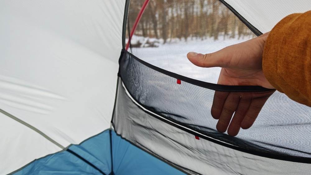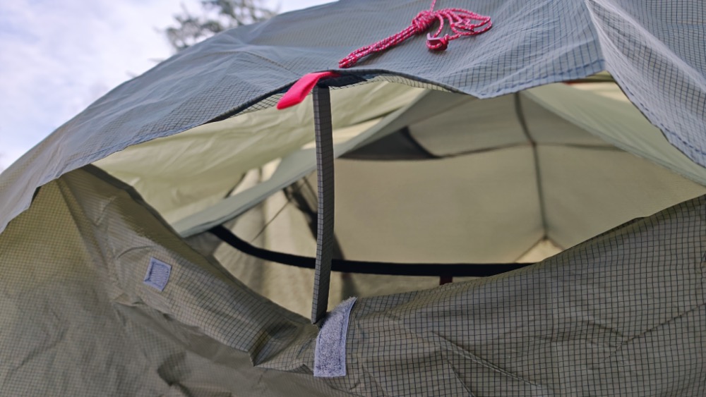 Wentylatory te są na tyle duże, że przed deszczem trzeba je zamknąć aby krople deszczu nie dostawały nam się do środka. Co ważne – zamek przedsionka ma drugi wózek dzięki któremu możemy rozszczelnić namiot od strony przedsionków (od góry) co dodatkowo poprawia wentylację. Zamki te mają wózki pozwalające zrobić te szczeliny z wnętrza namiotu co jest bardzo ważnym udogodnieniem.