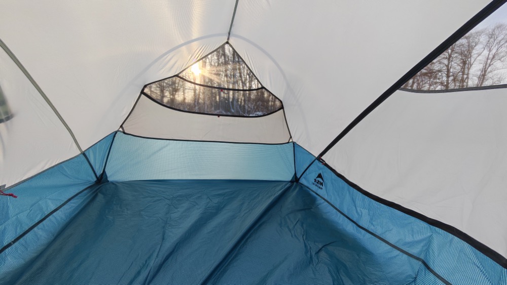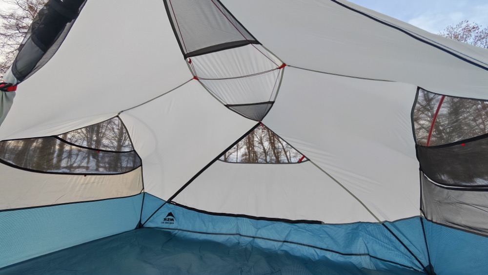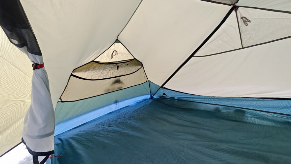 Oznacza to kilka rzeczy, przede wszystkim to, że w tym namiocie nawet dwumetrowy chłop zmieści się bez trudu. Wysokość sufitu sypialni 102 cm jest osiągalna nie tylko w samym środku namiotu jak to dawniej bywało w konstrukcjach „igloo” ale dach jest niemal płaski a sama sypialnia nie przypomina połowy sfery, a raczej solidny prostokątny klocek.