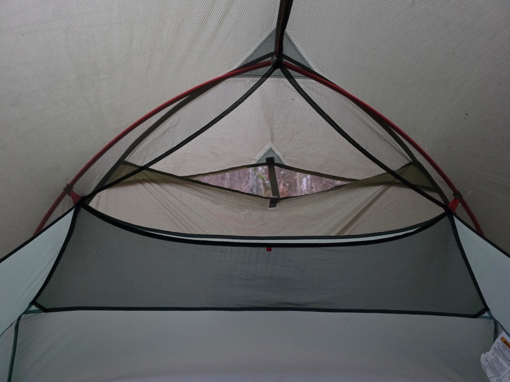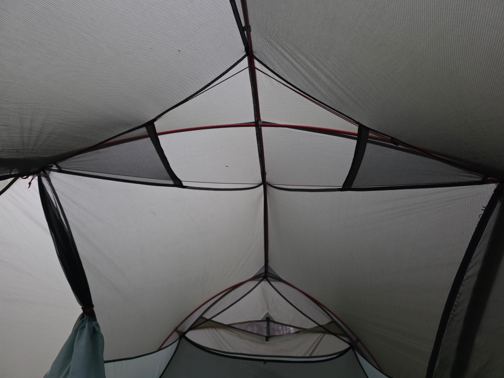Sypialnia ma aż 224 cm długości i 132 cm szerokości. Powierzchnia podłogi to aż 2.95 m2! Oznacza to kilka rzeczy, przede wszystkim to, że w tym namiocie nawet dwumetrowy chłop zmieści się bez trudu. Wysokość sufitu sypialni 102 cm jest osiągalna nie tylko w samym środku namiotu jak to dawniej bywało w konstrukcjach „igloo” ale dach jest niemal płaski a sama sypialnia nie przypomina połowy sfery, a raczej solidny prostokątny klocek.