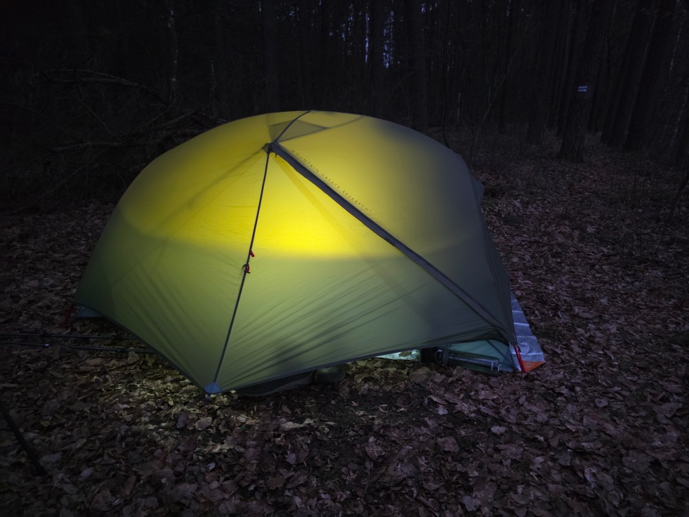 Tropik w kolorze zielonym łatwo wtapia się w tło a stojący w lesie namiot nie bardzo rzuca się w oczy co moim zdaniem jest zaletą. Materiał tropiku przepuszcza dużo światła dziennego. Dzięki temu namiot jest widny a w chłodniejsze dni przyjemnie nagrzeje się w środku od światła słonecznego i pozwoli wysuszyć wilgotne ubrania i ekwipunek.