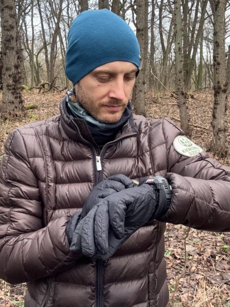 Na start, dosłownie i w przenośni poszły rękawiczki Trekmates Thaw. Zdecydowałem, że zawody na orientację w terenie będą doskonałym poligonem doświadczalnym. Nocny marsz na 25 km to moment, w którym człowiek zdaje sobie sprawę z jednego, że po zmroku zimno potrafi wejść pod skórę szybciej, niż się spodziewasz. Wiedziałem, że jeśli zmarzną mi dłonie, cała zabawa szybko zamieni się w walkę z dyskomfortem. I tu wchodzą wspomniane rękawiczki. Nie dość, że lekkie, kompaktowe to wypełnione ociepliną Primaloft, która naprawdę robi robotę.
